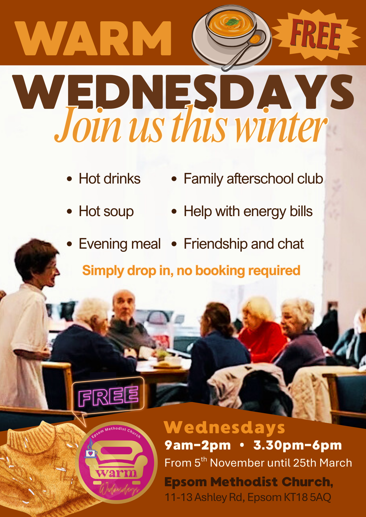 We also have three 'eat and meet' discussion sessions from 6pm to 8pm on Wednesdays 12th, 19th and 26th November. During these sessions Andy will be working with us on practical ideas, for us as individuals and for the whole church together, to make sharing faith integral and relevant to our circumstances here in Epsom.